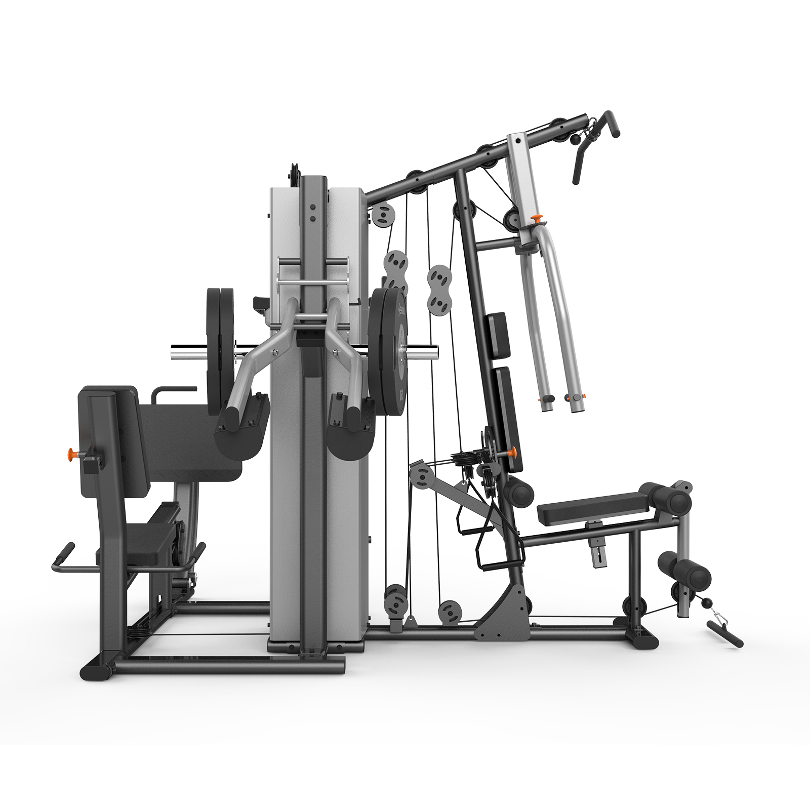 | 次要训练功能 | 悬垂举腿、坐姿划船、蹬腿、勾脚、自由拉绳训练等 | 配重重量 | 机身自带两组静音包胶配重片,66Kg/90Kg。深蹲架最大可承受120Kg杠铃片,另行选配。 |